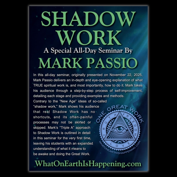 In this all-day seminar, originally presented on November 22, 2025, Mark Passio delivers an in-depth and eye-opening explanation of what TRUE spiritual work is, and most importantly, how to do it. Mark takes his audience through a step-by-step process of self-improvement, detailing each stage and providing examples and methods. Contrary to the “New Age” ideas of so-called “shadow work,” Mark shows his audience that real Shadow Work has no shortcuts, and its often-painful processes may not be skirted or skipped. Mark’s “Triple A” approach to Shadow Work is outlined in detail in this seminar for the very first time, leaving his students with an expanded understanding of what it means to be awake and doing the Great Work.