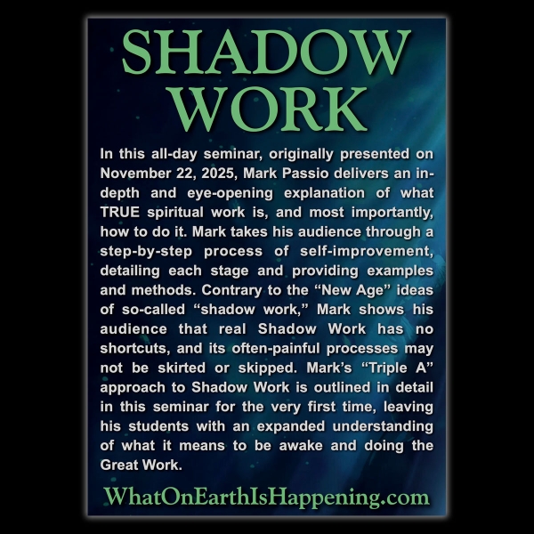In this all-day seminar, originally presented on November 22, 2025, Mark Passio delivers an in-depth and eye-opening explanation of what TRUE spiritual work is, and most importantly, how to do it. Mark takes his audience through a step-by-step process of self-improvement, detailing each stage and providing examples and methods. Contrary to the “New Age” ideas of so-called “shadow work,” Mark shows his audience that real Shadow Work has no shortcuts, and its often-painful processes may not be skirted or skipped. Mark’s “Triple A” approach to Shadow Work is outlined in detail in this seminar for the very first time, leaving his students with an expanded understanding of what it means to be awake and doing the Great Work.